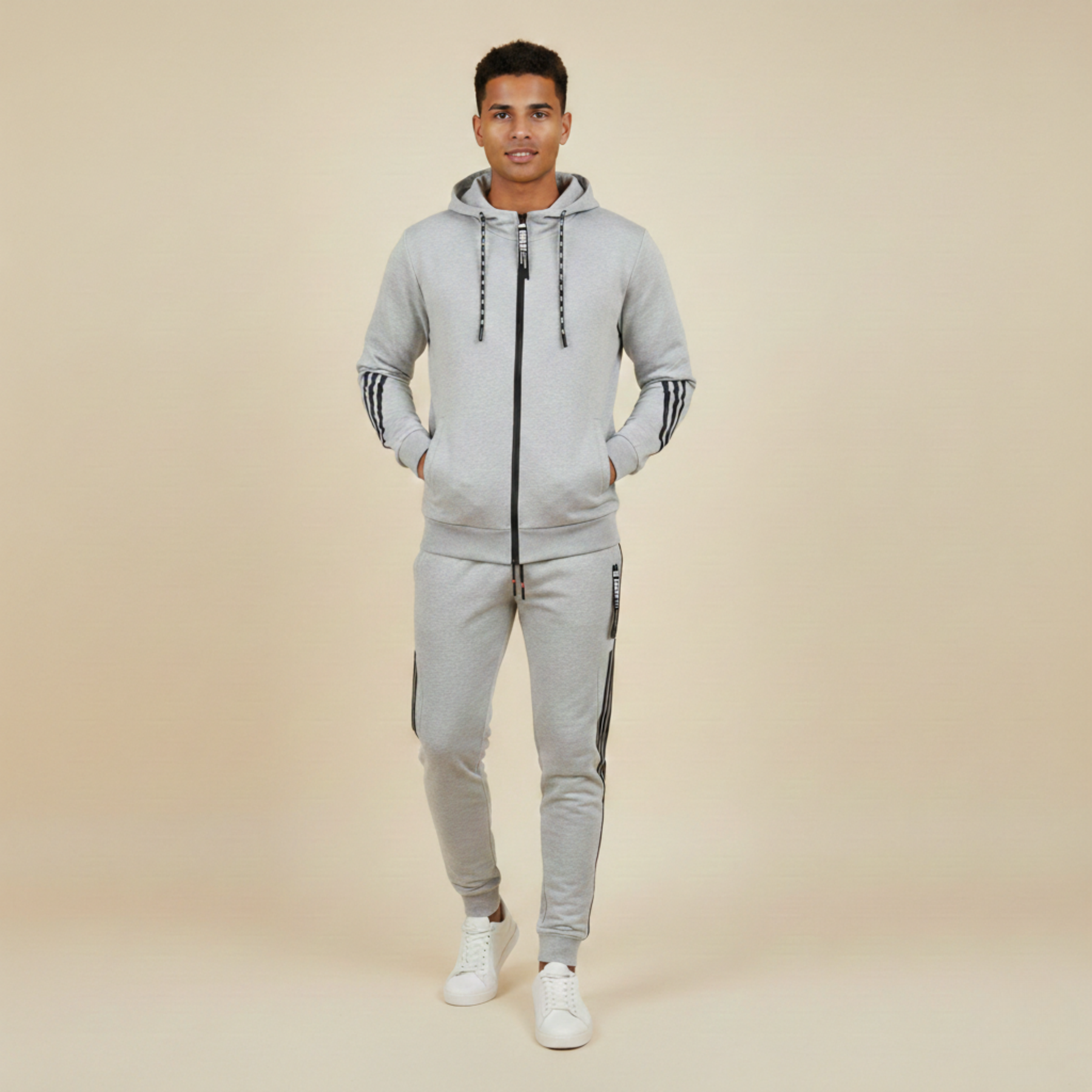 Der Mike Trainingsanzug bietet Ihnen ultimativen Komfort und ein modernes Gestaltung, das sowohl funktional als auch stilvoll ist. Dieser zweiteilige Anzug besteht aus weichen, atmungsaktiven Stoffen, die Ihnen Bewegungsfreiheit und ein angenehmes Tragegefühl garantieren. Egal, ob Sie trainieren, reisen oder einfach nur entspannen möchten, dieser Trainingsanzug ist die perfekte Wahl.
